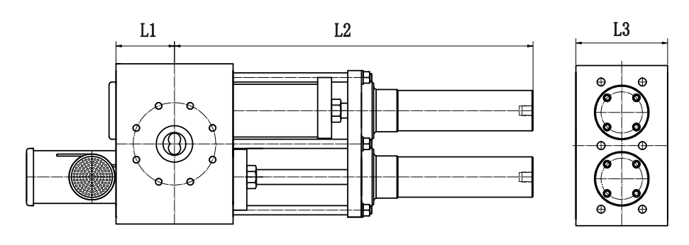 1、雙柱雙工位液壓換網(wǎng)器設(shè)計(jì)為雙通道雙濾網(wǎng)結(jié)構(gòu),換網(wǎng)時(shí)一網(wǎng)工作,一網(wǎng)更換,不中斷料流,不中斷產(chǎn)品,實(shí)現(xiàn)不停機(jī)換網(wǎng)。
